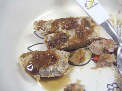 子もこれだけの肉を食べられるようになりました。 衣が着いていますよ。 ちょっと前までペーストでも苦しんでいたのに。 |