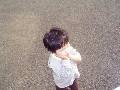 今日も、もみあげ気にするポーズ。 どうすっかなぁ〜・・・。 |