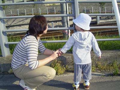 今日もご機嫌で散歩する息子。 温かくなって、嫌がることもなくなりました。 |