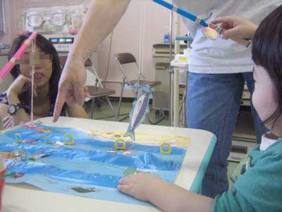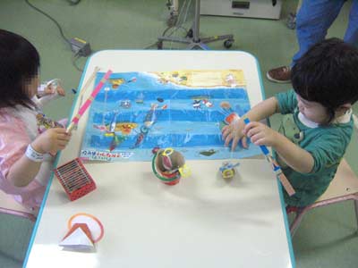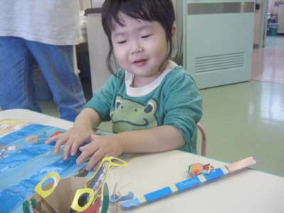 折り紙をそれぞれに折って子に持たせて運ばせて遊ばせる。