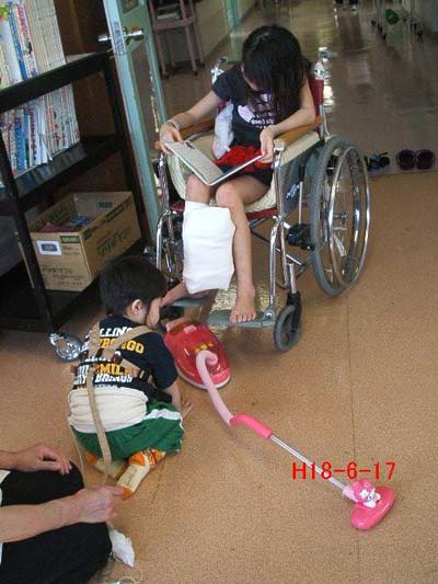 本人は掃除機で床の清掃に精を出す。
