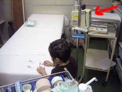 っとナースステーションにおいてある充電器をガラガラ引いて処置室に。