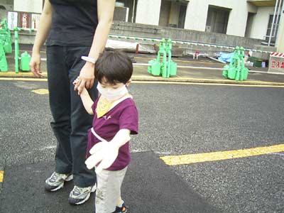 おママの熾烈な片づけは未完だったが、雨も上がったので駐車場に外散歩。