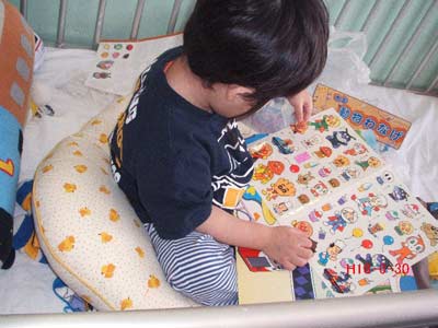 シールを貼る本や、パズルを出して遊ぶ。