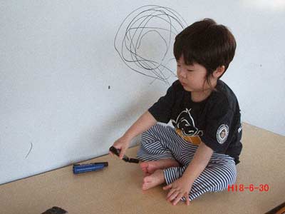 新しいピアノに触ったり、救急車を見たり、白板に絵を描いたり、