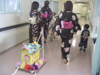 浴衣衣装の看護師さん。 おパパも夏祭りに行きたかったぞ。 |