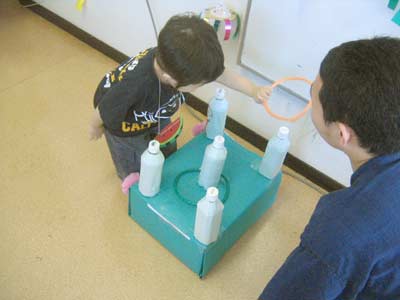 輪投げはやっぱり不得意で。 直接真上から落とします。 |