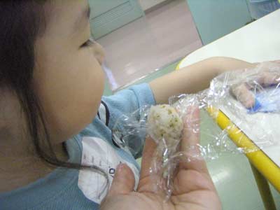 おにぎりで、パックパク。 |