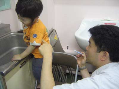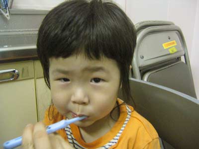 歯磨き、おパパじゃイヤだと言って・・・。 |