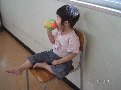 オムツを交換(オシッコのみ)してからサンダルでプレイルームに行く。