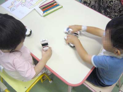 仲良く遊ぶ2人。 社会性、勉強です。 |
