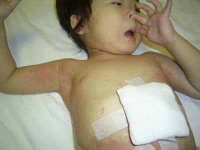 最初はオムツの線に沿っただけでしたが、 蕁麻疹が広がっているようです。 |