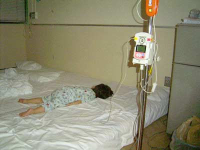 これがつないだ図。 つなぐには一度服を脱がせなければなりませんが、 子は目を覚ましません。 |