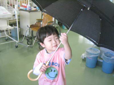 蕁麻疹が治らないので、 室内で傘さして。 |