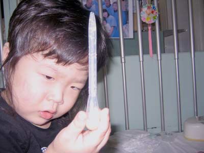 一瞬顔がこわばって、そのあとびぇ〜んと大泣きした途端、鼻から水が流れ落ちる。
