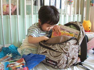 ベッドに戻った孫にすぐババのリックサックを渡す。
