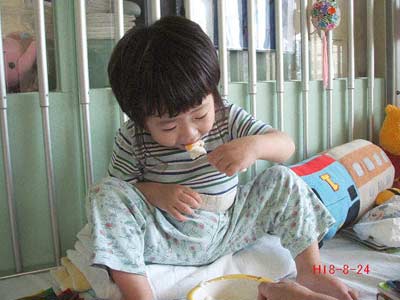 同室の子達はすでにベッドでお母さんに食べさせて貰っていた。