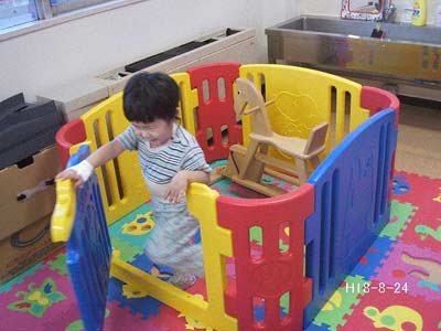 その後プレイルームに行くというのでスリッパを履いて、プレールームに行く。