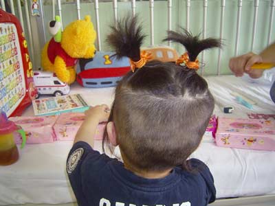 髪を上げて臨戦態勢。 通気性、バツグンです。 |