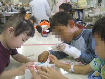 ナースステーションではお友達が医療用具の下準備をしていた。