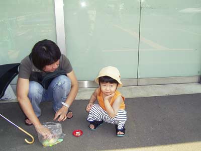 S子ちゃんとTYが出てきて、 大シャボン玉大会。 OMさん、シャボンだらけになってます。 |