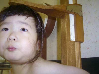 しっかり立たなきゃ。 ほら、縮んでるぞ。 90.8cm。身長だけ微増です。 |