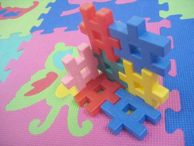 私が小さい緑のブロックを「いもむし」と言って座らせると、大喜びしていました。