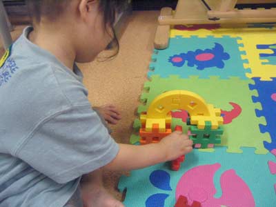 歯磨きをプレイルームでした後ブロック遊び。