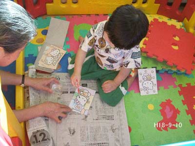 新しく持参した「水ぬりえセット」に興味をもったので、