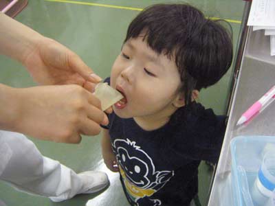 もう一回私がかじってから、再度子の口元に。