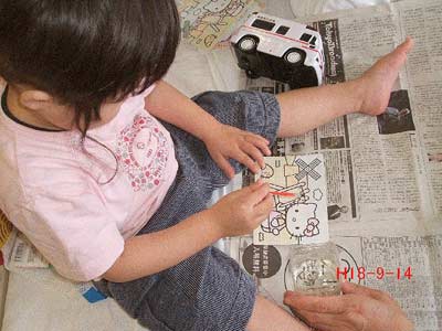 混合色となってしまった。まだチョット難しい遊びらしい。