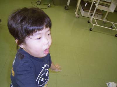 初めはキョトンとしていたが、 すぐに抱っこ〜と泣き始めた。 |