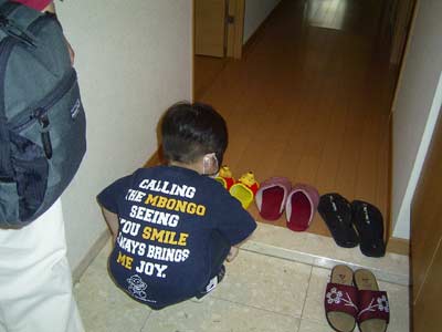 見覚えのあるスリッパに、 喜んで靴を脱ぐ息子。 作戦成功だ。 |