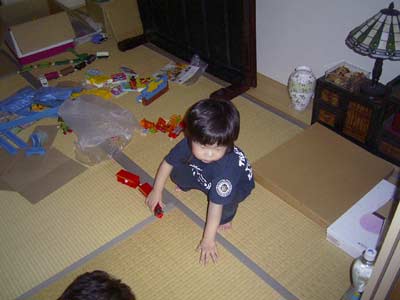 これまた最近大好きな電車遊び。 目の色が変わります。 |
