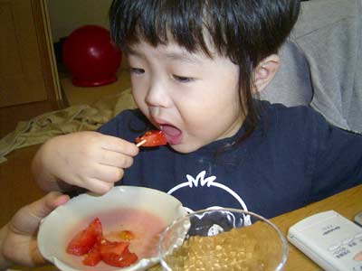 トマトをパクパク食べてくれて、一安心。 それを聞いたジジババも大喜び。 |