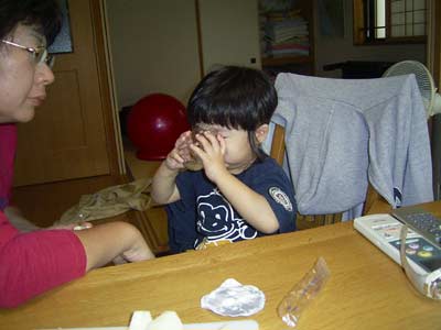 息子は家中を散策し、戻ってきてはオヤツオヤツと催促する。