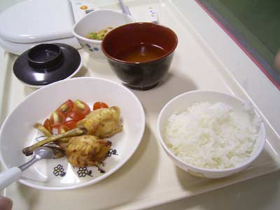 鶏肉2本、ご飯大盛り、みそ汁つき。 これは贅沢だ! |
