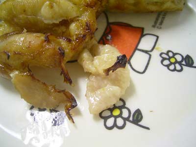 鶏肉には皮が。 過度の油は短小腸には厳禁である。 でもこれくらいは許されるのだなと思うと、 嬉しくなった。 |