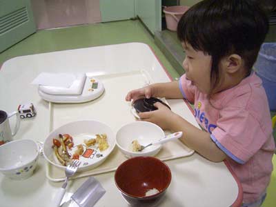 大好きな味付け海苔を「巻いて巻いて!」と催促。