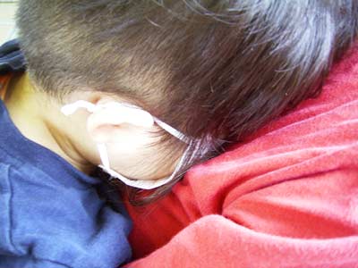 おママも大変なので、おパパ預かり。 既にギブアップ寸前です。 |