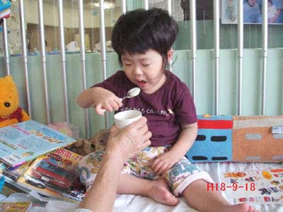 孫がベッドに戻った僅かな間に夕食の配膳車が来ていた。
