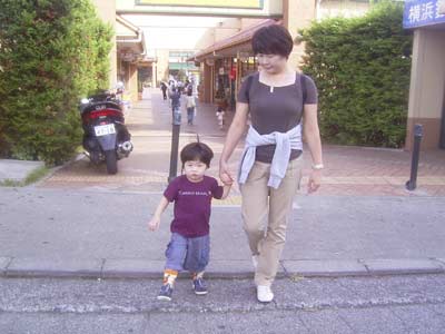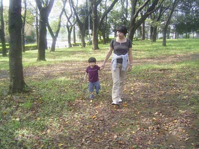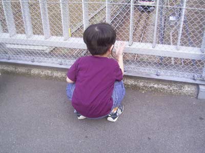 取り残される、息子の図。 草の上を歩いてはいけないと思ったようで、 足が進まず。 それでも自分なりに何かを踏まないように、 大股で歩いていました。 |