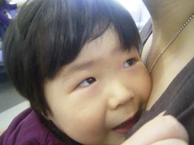 一瞬笑顔になることもあるが、 すぐに泣き出しそうに、 コワイ〜! |