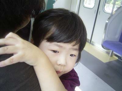 電車もやっと慣れてきたようで、抱っこで顔を押しつけるものの、