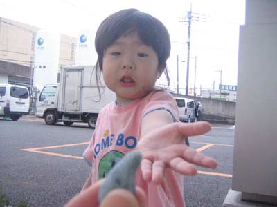 この石、幸運の石。 しまじろうの絵本がいっぱいもらえるよ! ちょうだいっ! |