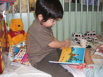 エレベーターで4階に昇り、小児科入り口の長いすで配膳車の来るのを待った。