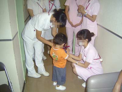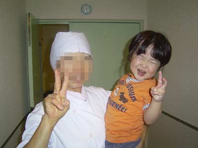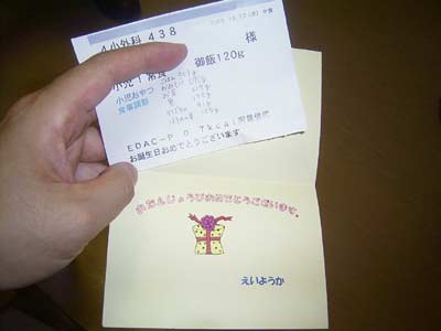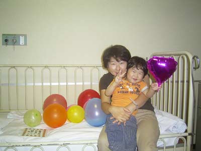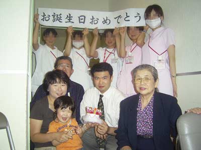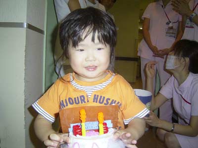 看護師さんに囲まれ、「♪ハッピー バースデー」を歌って貰う。