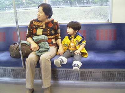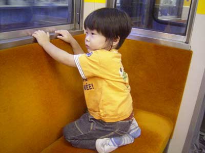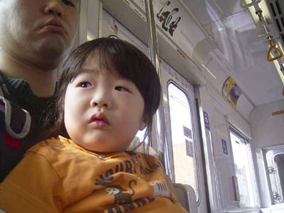 電車に乗ると、抱っこもなくすぐ膝の上。