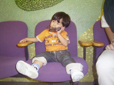 着替える前に、おママに電話。 声が聞こえ、会話ができるだけでも安心するようです。 |