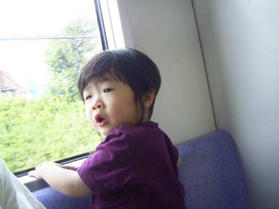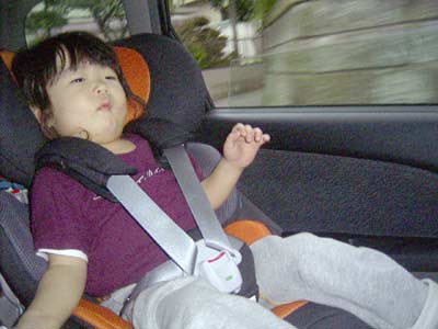 く、くわい・・・。 普段しゃべくり倒す息子が、 慣れない車中では固まってしまいます。 |